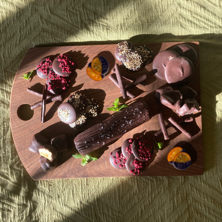 Hand-made in Goudhurst, Kent. Each log is approximately 140g and can be cut into thin slices to feed up to 10 people. All of our packaging is home compostable, and our boxes are recyclable. As with everything we make, these are vegan and gluten free!